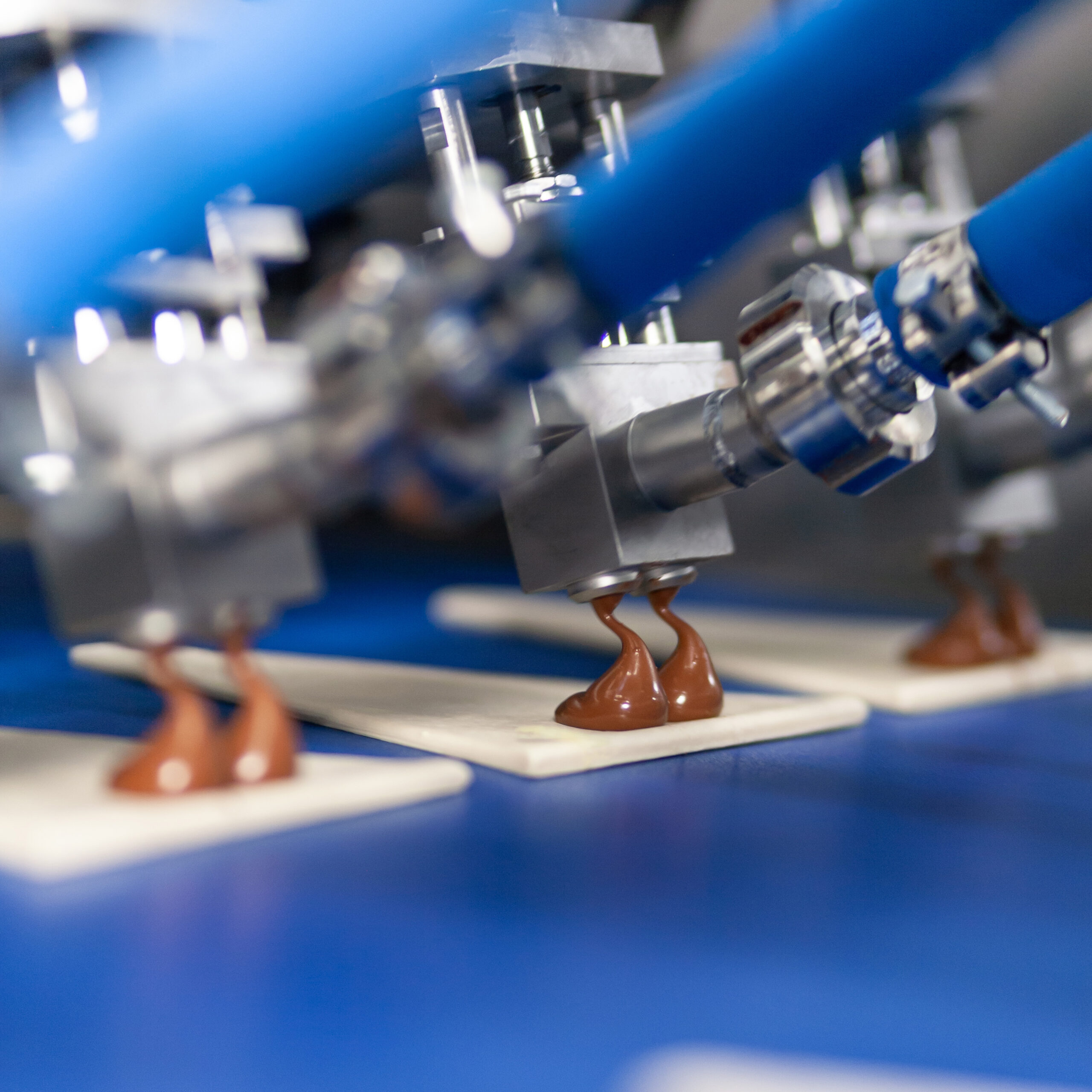 Your croissants can be filled with a wide variety of fillings, catering to both sweet and savory preferences. Whether you’re using semi-liquid fillings like chocolate, jam, or sour cream, or solid fillings like ham, cheese, and fruit, Rademaker provides tailored depositing solutions for each type of filling. We can even create double (duo-color) fillings with ingredients such as ham, apple, or other particles, adding variety and visual appeal to your products.