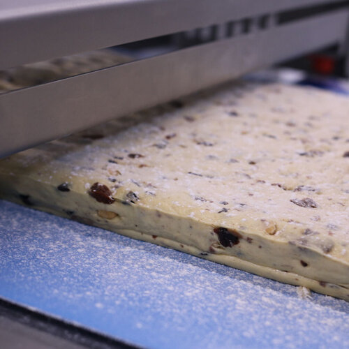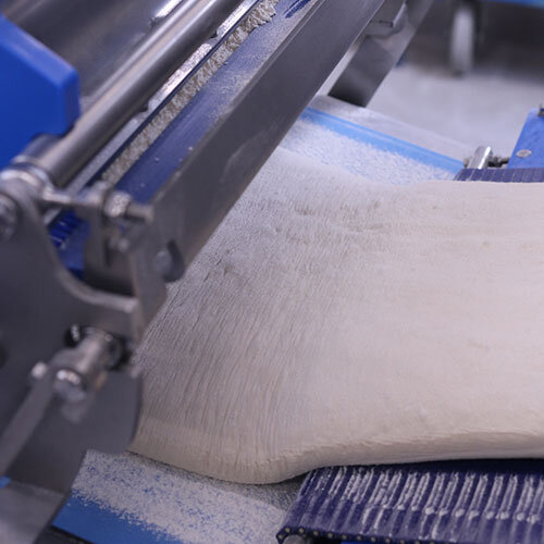 The dough batch is processed into a continuous dough sheet while retaining the integrity of the dough structure. Thanks to the innovative Dynamic Pre sheeting System (DPS) the Radini production line is suitable for handling both firm and soft fermented dough. Processing dough with inclusions like fruit and nuts is possible as well.