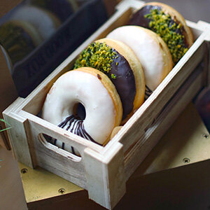 A sweet delicacy with endless flavours! Flavours in filling and toppings in all colours of the rainbow. Sometimes even decorated with famous biscuits or chocolate bars. The donut is served on many occasions in mini or maxi variant and various shapes.