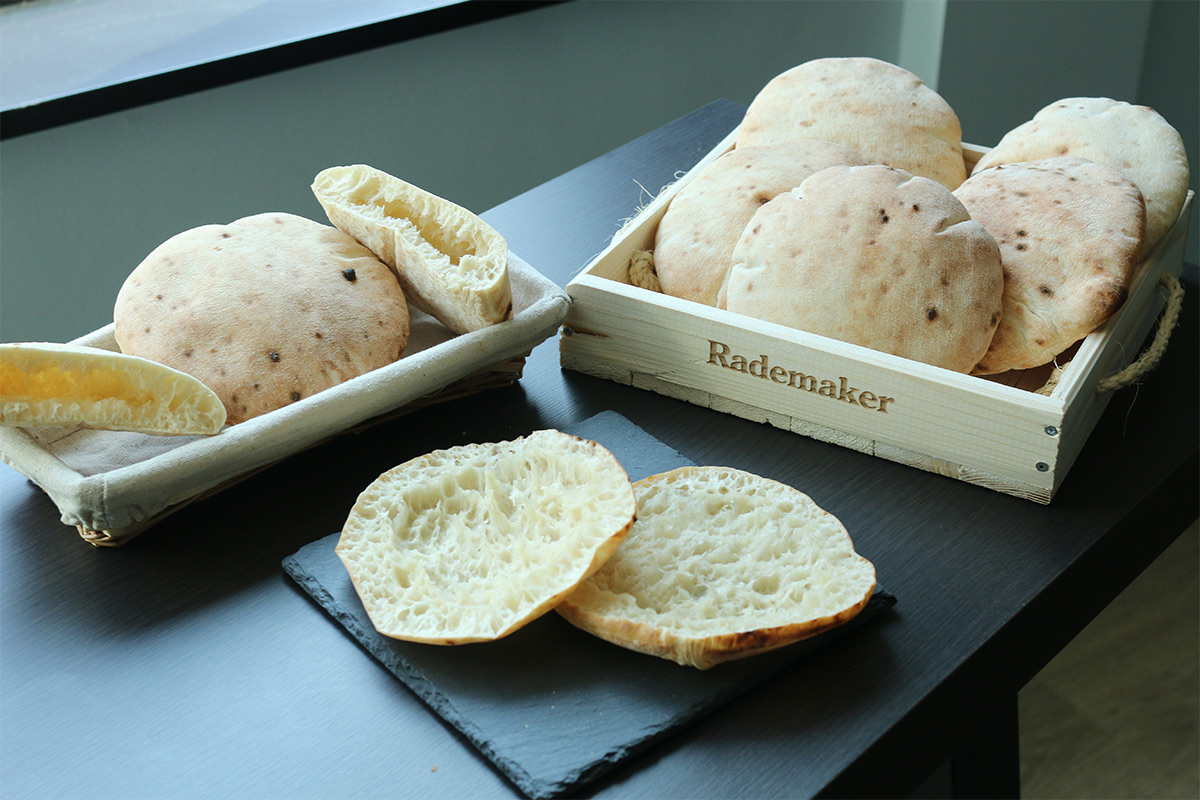 Thanks to modern processing and packaging technologies, we can produce flatbreads on an industrial scale. With a versatile and flexible setup, we can manufacture all types of flatbreads, ranging in thickness from 20 mm to as thin as 0.6 mm for Lavash. Flatbreads such as pita, lavash, barbari, sangak, taftoun, naan, tortilla, roti, chapati, focaccia, bagel, thin sandwiches, tunnbröd, wraps, and pizza bases can be rolled or pressed into any desired shape or size. Even gluten-free flatbreads can be produced on the Rademaker Flatbread Sheeting Line.
