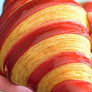 In contrast, puff pastry (Blätterteig in German) is made from yeast-free dough and requires a much higher number of layers — often 64 to 100 when produced on an industrial laminator. This creates a fine, crisp structure with thinner layers and less volume per fold. A well-known product in this category is the mille-feuille, which literally means ‘a thousand sheets’.
