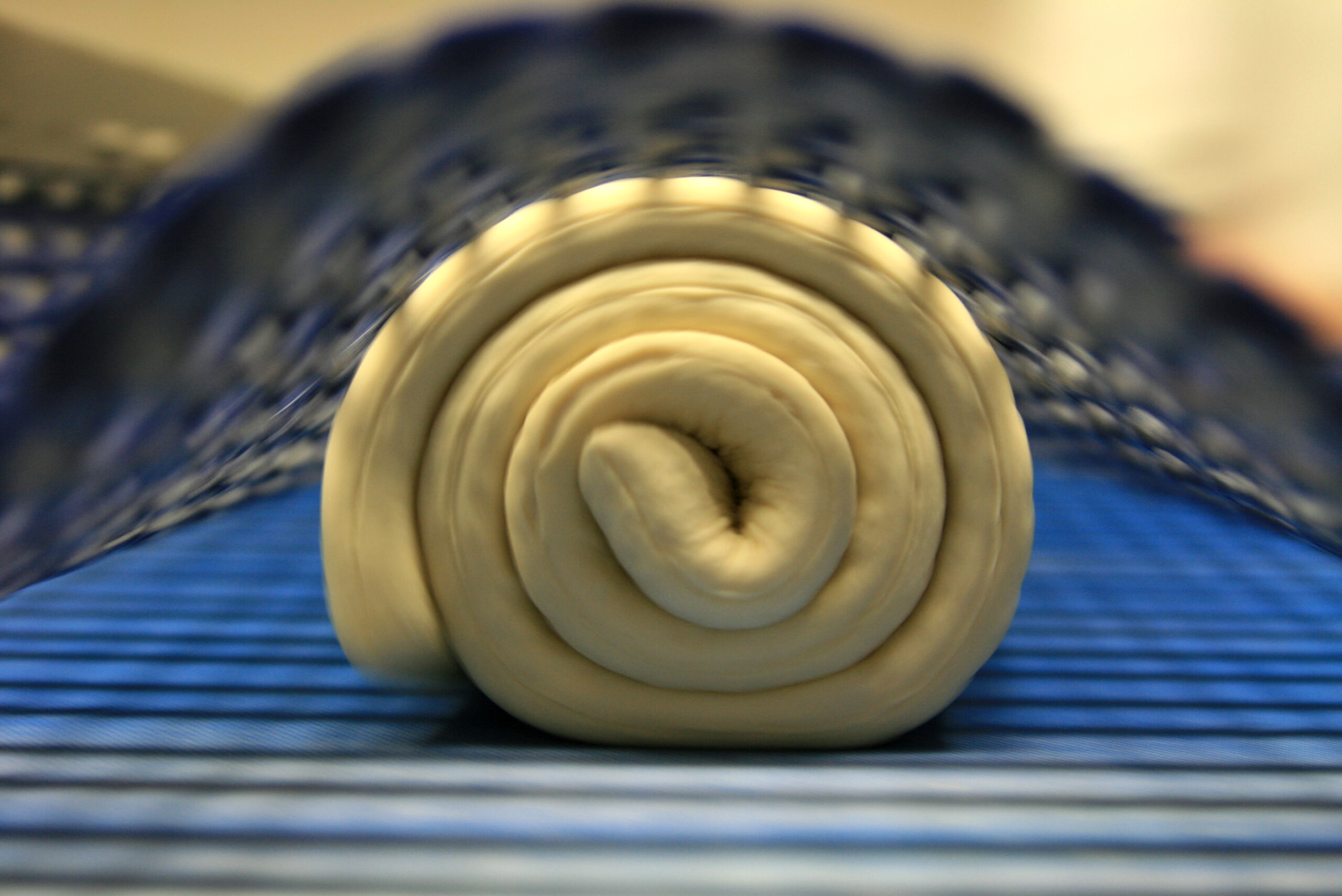 De V-Moulder rolt deegdriehoekjes met behulp van vacuümtechnologie. Het vacuüm fixeert het deegdriehoekje op de vacuümroller. Een speciaal flapje trekt vervolgens het deegstuk van de vacuümroller. Hier wordt de eerste krul gevormd en wordt de vulling van de croissant ingesloten. Na dit krulproces wordt de croissant verder opgerold door middel van vormflappen. Met de V-Moulder kunnen we zowel open- als gesloten-eindcroissants produceren. Voor zowel gevulde als ongevulde producten kan de V-Moulder een capaciteit van 100 stoten per minuut bereiken.
